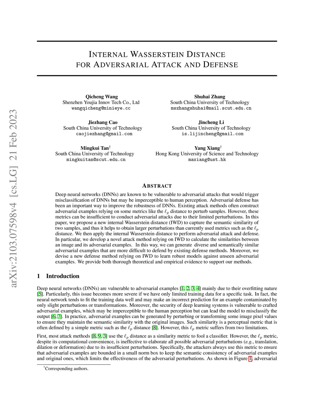 Internal Wasserstein Distance for Adversarial Attack and Defense