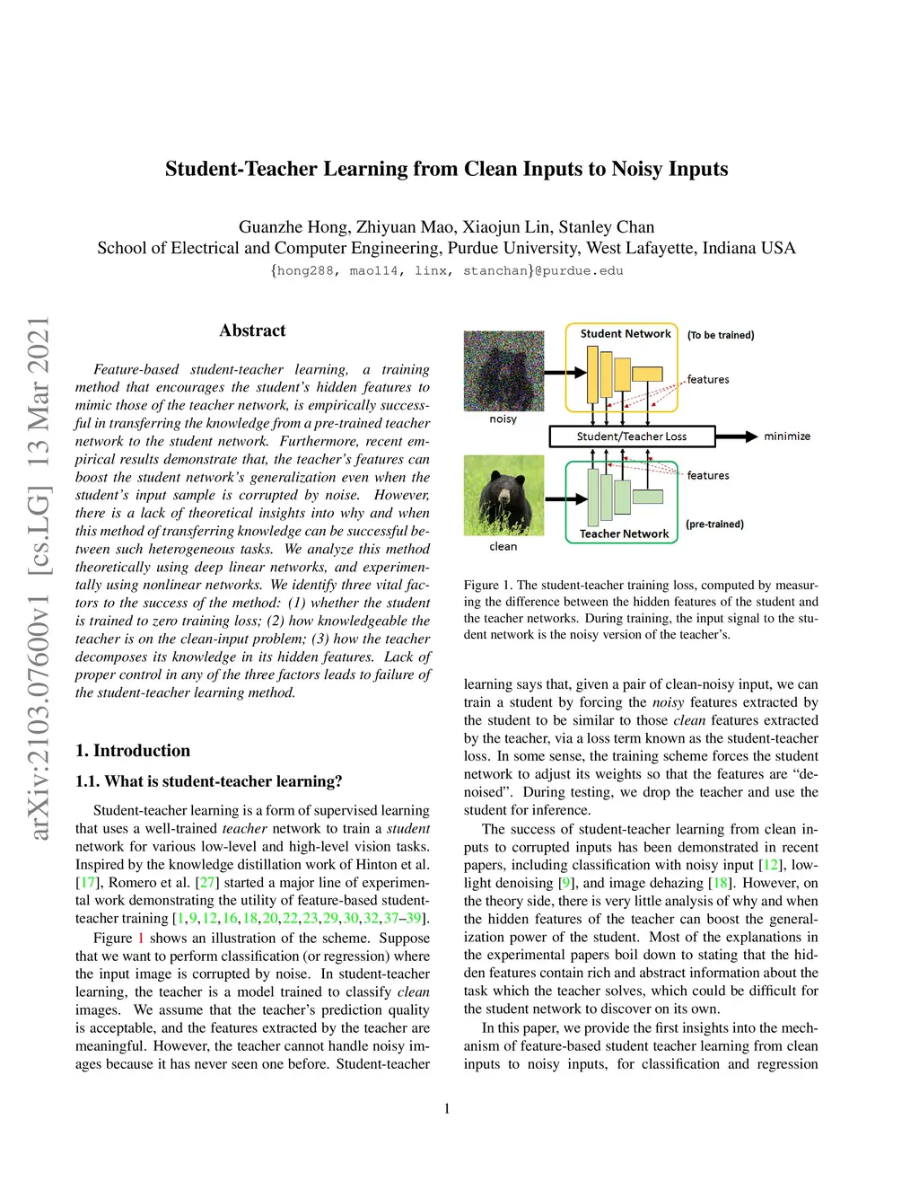 Student-Teacher Learning from Clean Inputs to Noisy Inputs