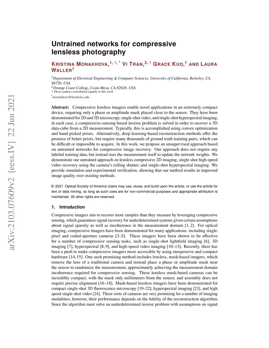 Compressive lensless imagers enable novel applications in an extremely compact device, requiring only a phase or amplitude mask placed close to the sensor. They have been demonstrated for 2D and 3D microscopy, single-shot video, and single-shot hyperspectral imaging; in each of these cases, a compressive-sensing-based inverse problem is solved in order to recover a 3D data-cube from a 2D measurement. Typically, this is accomplished using convex optimization and hand-picked priors. Alternatively, deep learning-based reconstruction methods offer the promise of better priors, but require many thousands of ground truth training pairs, which can be difficult or impossible to acquire. In this work, we propose the use of untrained networks for compressive image recovery. Our approach does not require any labeled training data, but instead uses the measurement itself to update the network weights. We demonstrate our untrained approach on lensless compressive 2D imaging as well as single-shot high-speed video recovery using the camera's rolling shutter, and single-shot hyperspectral imaging. We provide simulation and experimental verification, showing that our method results in improved image quality over existing methods.