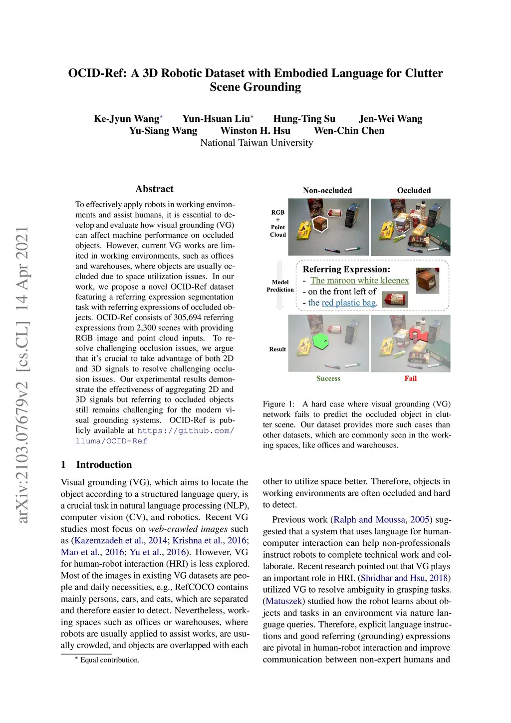 OCID-Ref: A 3D Robotic Dataset with Embodied Language for Clutter Scene