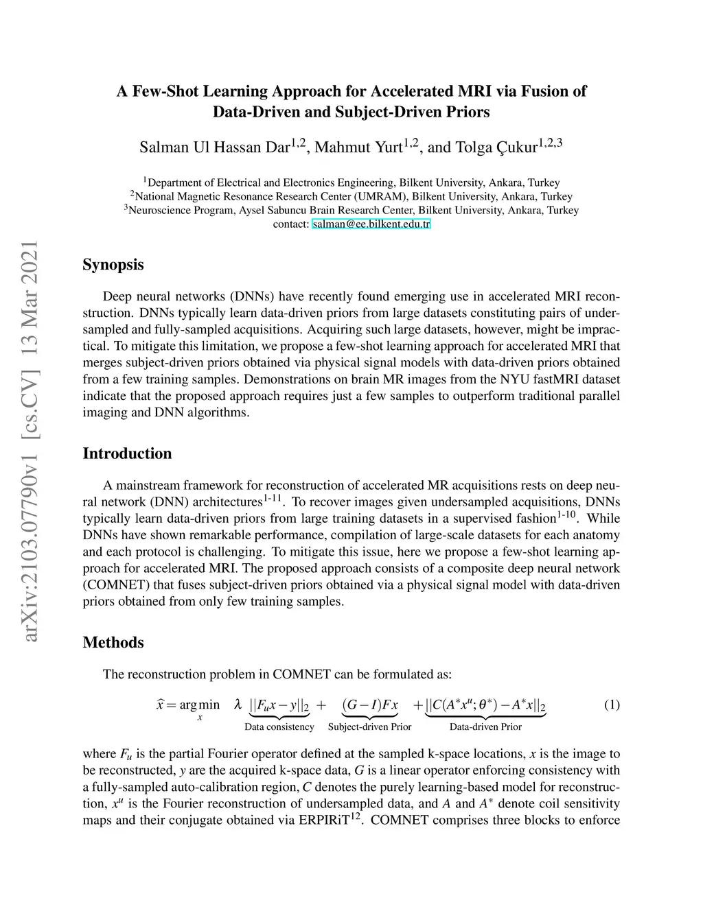 A Few-Shot Learning Approach for Accelerated MRI via Fusion of