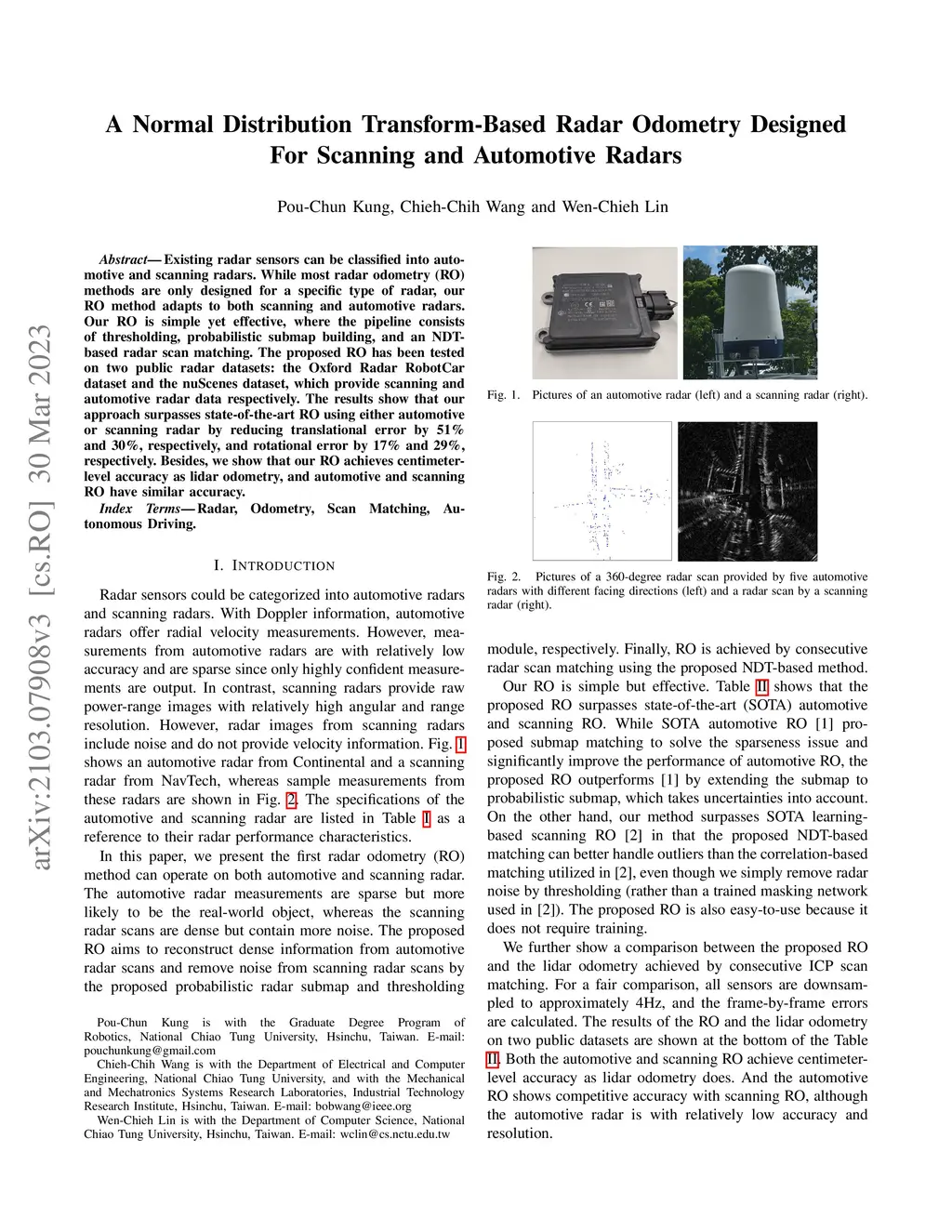 A Normal Distribution Transform-Based Radar Odometry Designed For