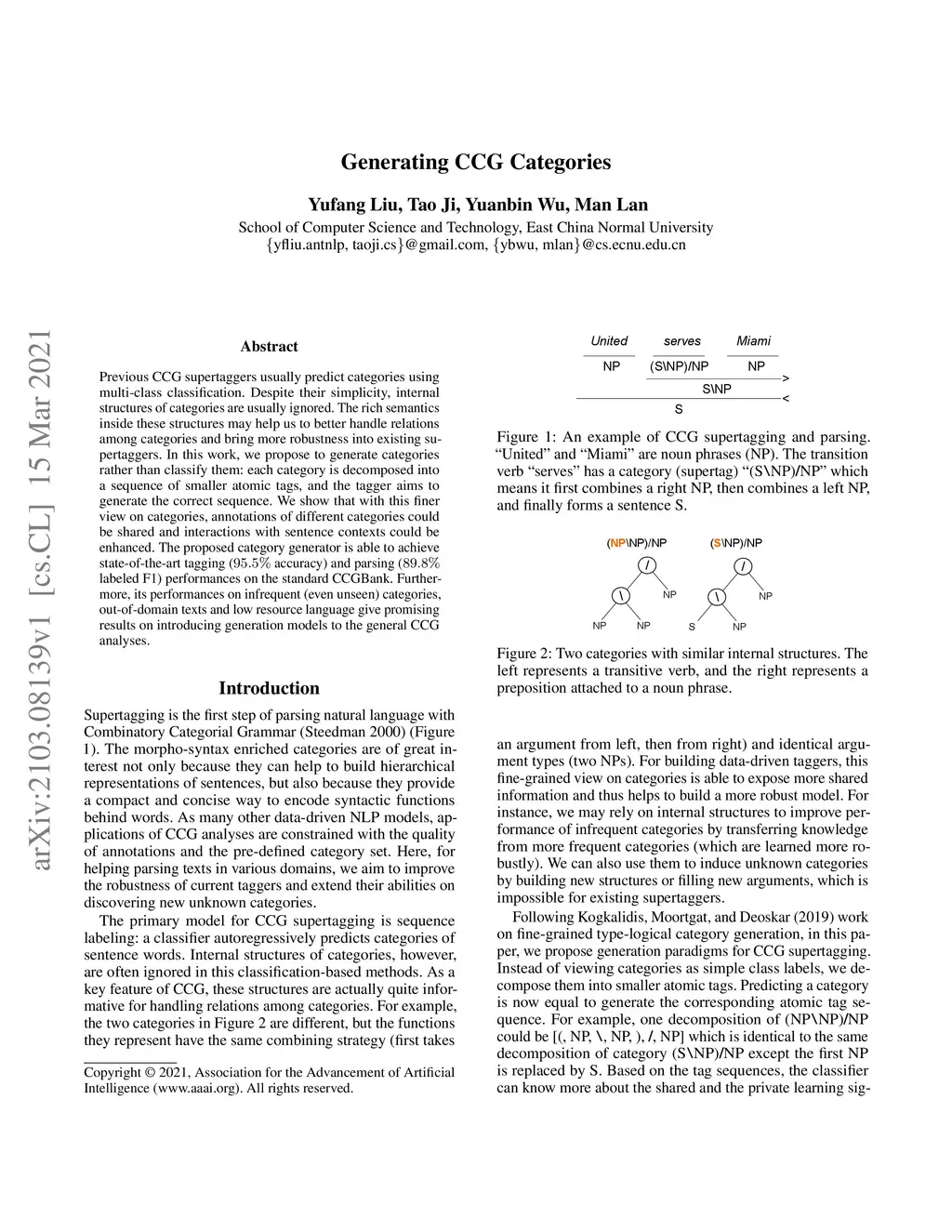 Previous CCG supertaggers usually predict categories using multi-class classification. Despite their simplicity, internal structures of categories are usually ignored. The rich semantics inside these structures may help us to better handle relations among categories and bring more robustness into existing supertaggers. In this work, we propose to generate categories rather than classify them: each category is decomposed into a sequence of smaller atomic tags, and the tagger aims to generate the correct sequence. We show that with this finer view on categories, annotations of different categories could be shared and interactions with sentence contexts could be enhanced. The proposed category generator is able to achieve state-of-the-art tagging (95.5% accuracy) and parsing (89.8% labeled F1) performances on the standard CCGBank. Furthermore, its performances on infrequent (even unseen) categories, out-of-domain texts and low resource language give promising results on introducing generation models to the general CCG analyses.