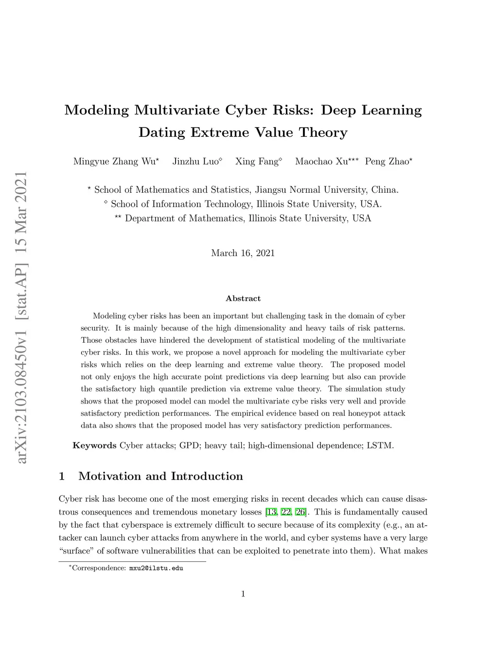 Modeling cyber risks has been an important but challenging task in the domain of cyber security. It is mainly because of the high dimensionality and heavy tails of risk patterns. Those obstacles have hindered the development of statistical modeling of the multivariate cyber risks. In this work, we propose a novel approach for modeling the multivariate cyber risks which relies on the deep learning and extreme value theory. The proposed model not only enjoys the high accurate point predictions via deep learning but also can provide the satisfactory high quantile prediction via extreme value theory. The simulation study shows that the proposed model can model the multivariate cyber risks very well and provide satisfactory prediction performances. The empirical evidence based on real honeypot attack data also shows that the proposed model has very satisfactory prediction performances.