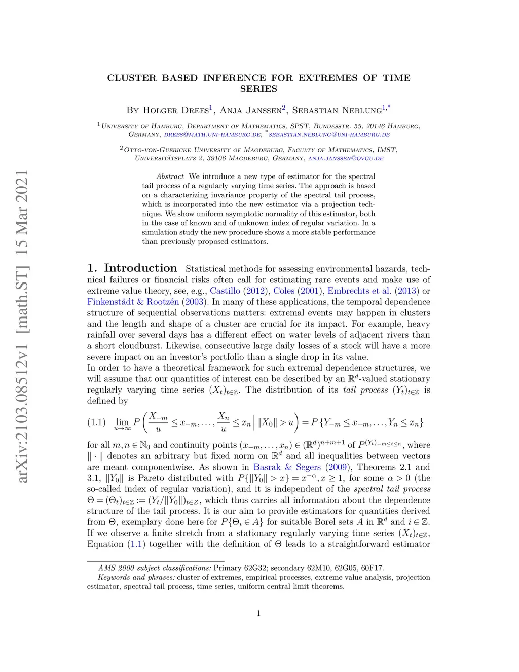 Cluster based inference for extremes of time series
