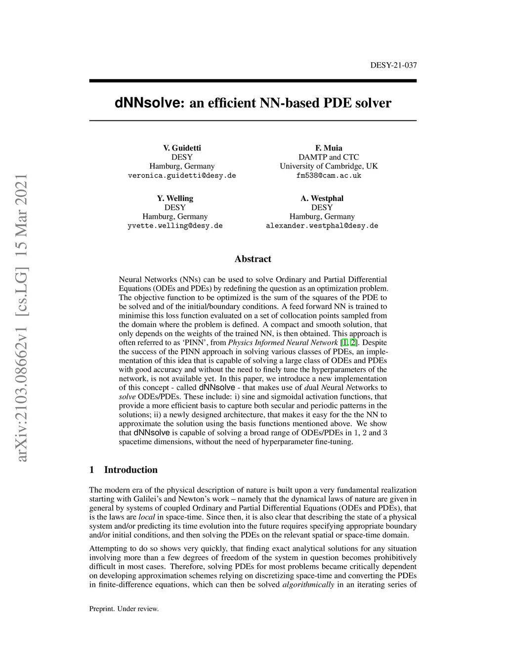 Neural Networks (NNs) can be used to solve Ordinary and Partial Differential Equations (ODEs and PDEs) by redefining the question as an optimization problem. The objective function to be optimized is the sum of the squares of the PDE to be solved and of the initial/boundary conditions. A feed forward NN is trained to minimise this loss function evaluated on a set of collocation points sampled from the domain where the problem is defined. A compact and smooth solution, that only depends on the weights of the trained NN, is then obtained. This approach is often referred to as PINN, from Physics Informed Neural Network~\cite{raissi2017physics_1, raissi2017physics_2}. Despite the success of the PINN approach in solving various classes of PDEs, an implementation of this idea that is capable of solving a large class of ODEs and PDEs with good accuracy and without the need to finely tune the hyperparameters of the network, is not available yet. In this paper, we introduce a new implementation of this concept - called dNNsolve - that makes use of dual Neural Networks to solve ODEs/PDEs. These include: i) sine and sigmoidal activation functions, that provide a more efficient basis to capture both secular and periodic patterns in the solutions; ii) a newly designed architecture, that makes it easy for the the NN to approximate the solution using the basis functions mentioned above. We show that dNNsolve is capable of solving a broad range of ODEs/PDEs in 1, 2 and 3 spacetime dimensions, without the need of hyperparameter fine-tuning.