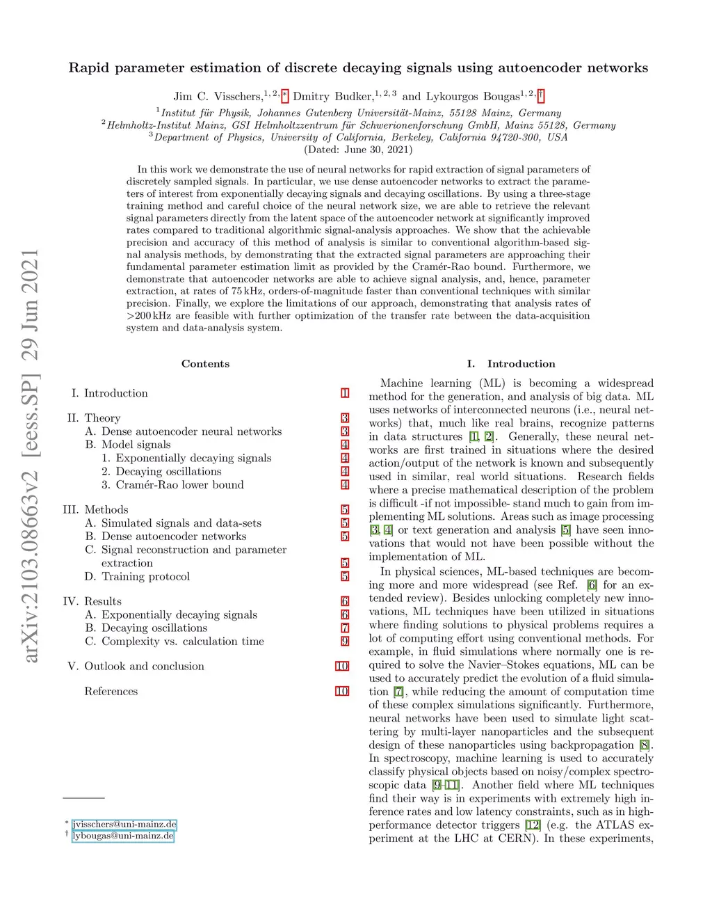 In this work we demonstrate the use of neural networks for rapid extraction of signal parameters of discretely sampled signals. In particular, we use dense autoencoder networks to extract the parameters of interest from exponentially decaying signals and decaying oscillations. By using a three-stage training method and careful choice of the neural network size, we are able to retrieve the relevant signal parameters directly from the latent space of the autoencoder network at significantly improved rates compared to traditional algorithmic signal-analysis approaches. We show that the achievable precision and accuracy of this method of analysis is similar to conventional algorithm-based signal analysis methods, by demonstrating that the extracted signal parameters are approaching their fundamental parameter estimation limit as provided by the Cram\ér-Rao bound. Furthermore, we demonstrate that autoencoder networks are able to achieve signal analysis, and, hence, parameter extraction, at rates of 75 kHz, orders-of-magnitude faster than conventional techniques with similar precision. Finally, we explore the limitations of our approach, demonstrating that analysis rates of 200 kHz are feasible with further optimization of the transfer rate between the data-acquisition system and data-analysis system.