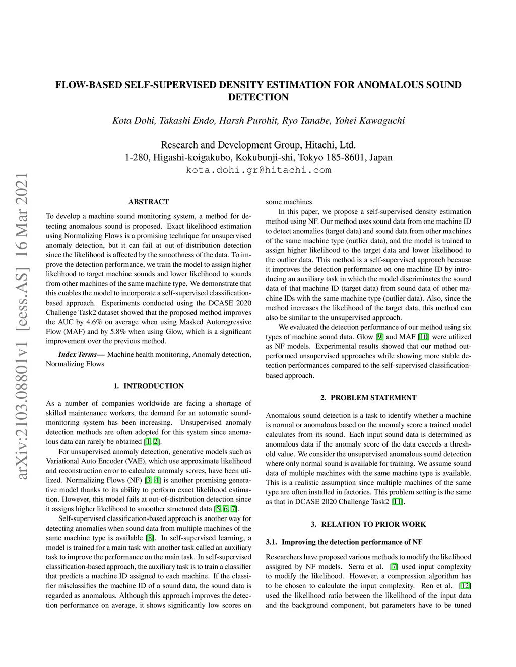 Flow-based Self-supervised Density Estimation for Anomalous Sound