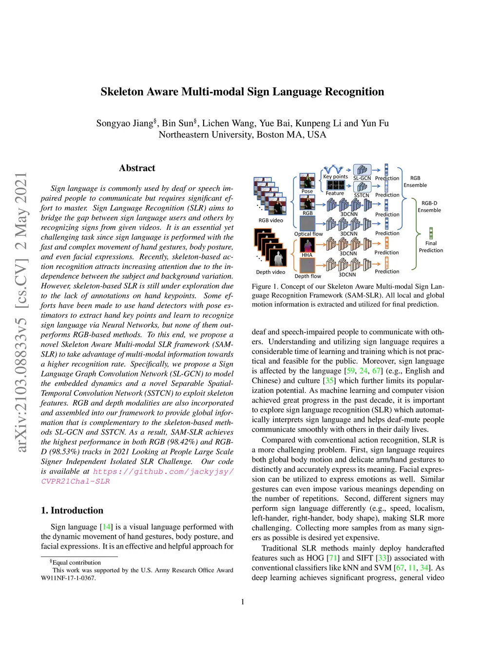 Skeleton Aware Multi-modal Sign Language Recognition
