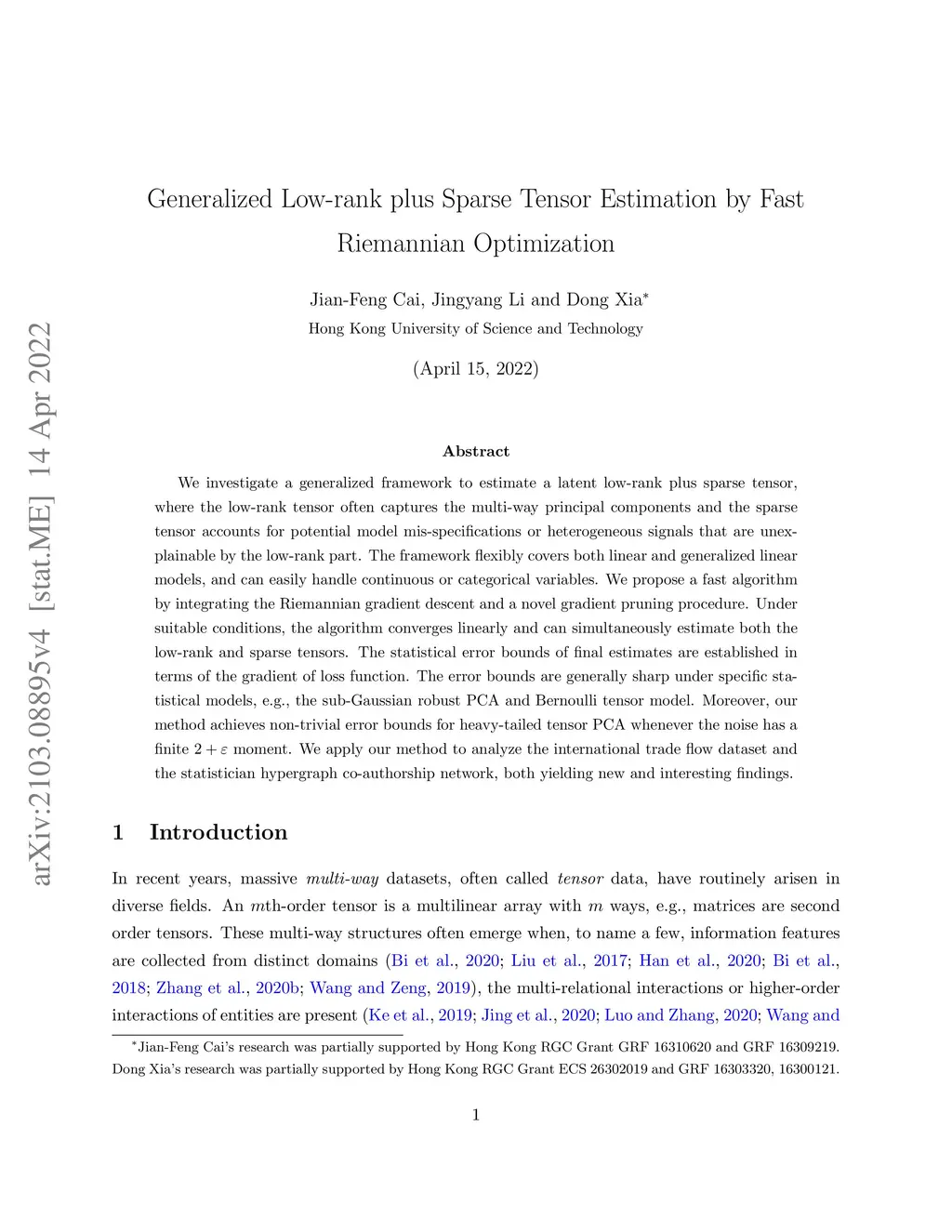 Generalized Low-rank plus Sparse Tensor Estimation by Fast Riemannian