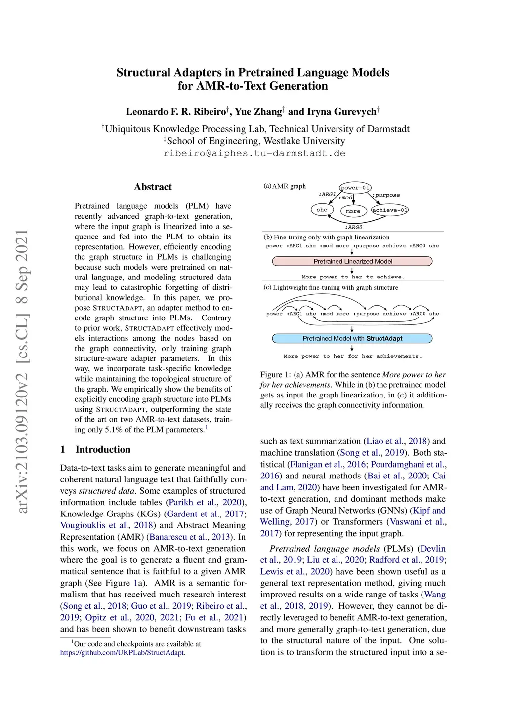 Structural Adapters in Pretrained Language Models for AMR-to-text