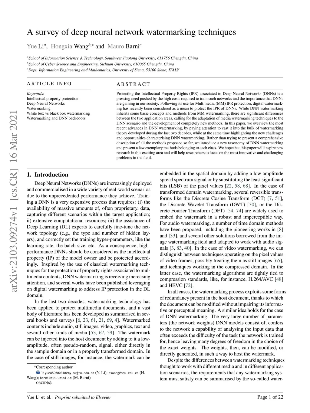 A survey of deep neural network watermarking techniques