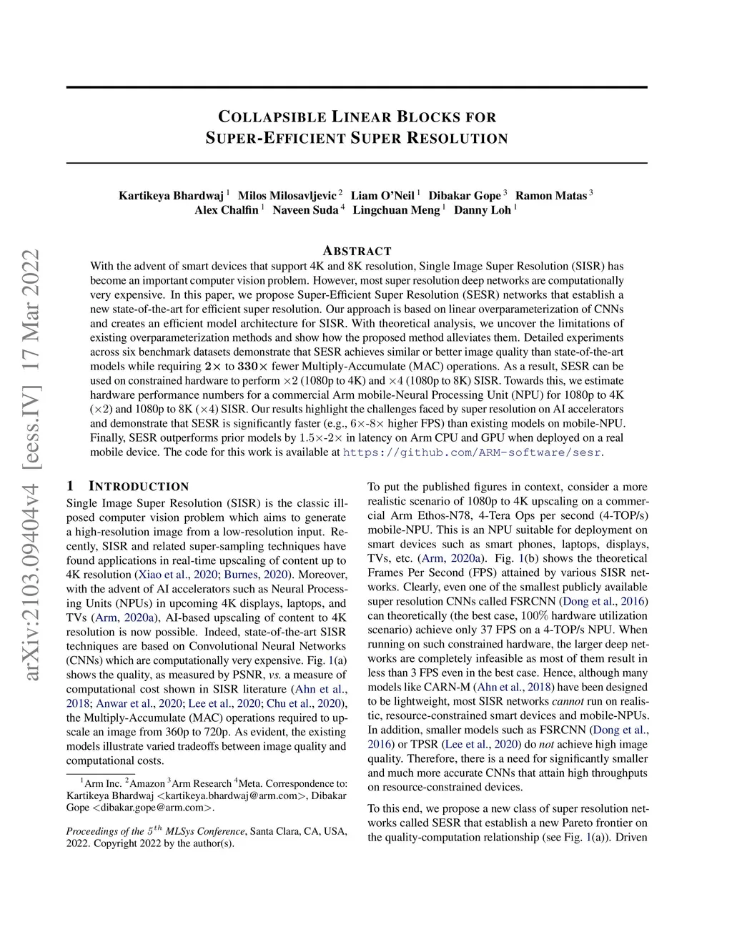 Collapsible Linear Blocks for Super-Efficient Super Resolution