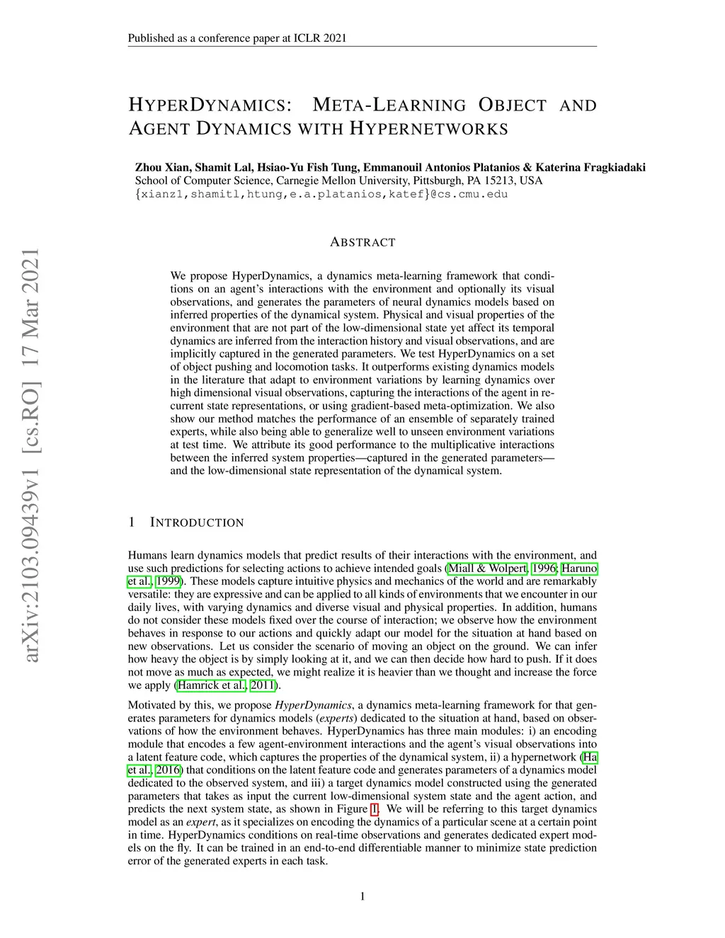 HyperDynamics: Meta-Learning Object and Agent Dynamics with