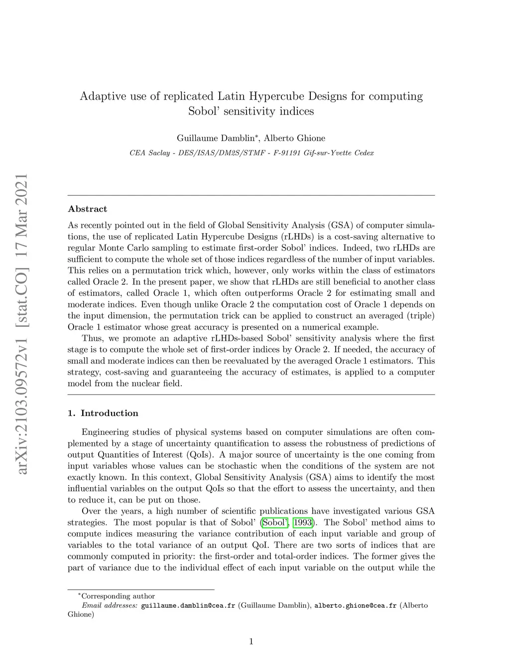 As recently pointed out in the field of Global Sensitivity Analysis (GSA) of computer simulations, the use of replicated Latin Hypercube Designs (rLHDs) is a cost-saving alternative to regular Monte Carlo sampling to estimate first-order Sobol' indices. Indeed, two rLHDs are sufficient to compute the whole set of those indices regardless of the number of input variables. This relies on a permutation trick which, however, only works within the class of estimators called Oracle 2. In the present paper, we show that rLHDs are still beneficial to another class of estimators, called Oracle 1, which often outperforms Oracle 2 for estimating small and moderate indices. Even though unlike Oracle 2 the computation cost of Oracle 1 depends on the input dimension, the permutation trick can be applied to construct an averaged (triple) Oracle 1 estimator whose great accuracy is presented on a numerical example. Thus, we promote an adaptive rLHDs-based Sobol' sensitivity analysis where the first stage is to compute the whole set of first-order indices by Oracle 2. If needed, the accuracy of small and moderate indices can then be reevaluated by the averaged Oracle 1 estimators. This strategy, cost-saving and guaranteeing the accuracy of estimates, is applied to a computer model from the nuclear field.
