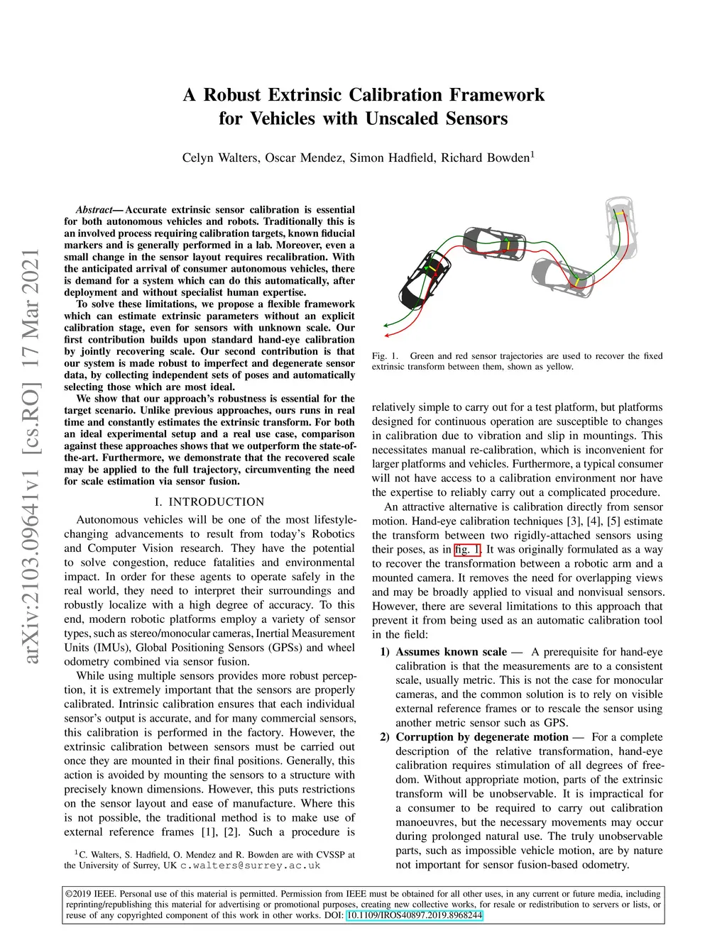 A Robust Extrinsic Calibration Framework for Vehicles with Unscaled