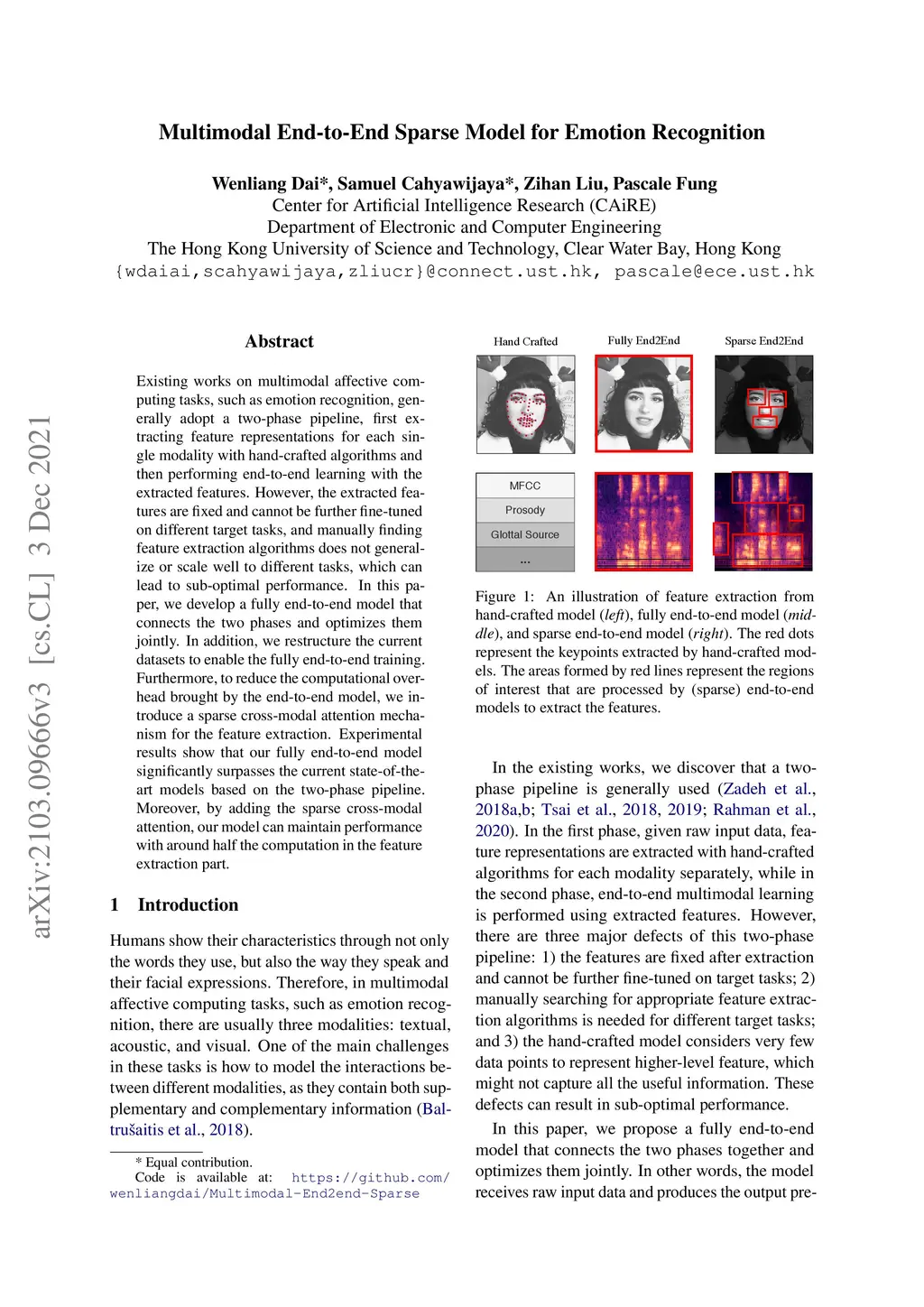 Multimodal End-to-End Sparse Model for Emotion Recognition