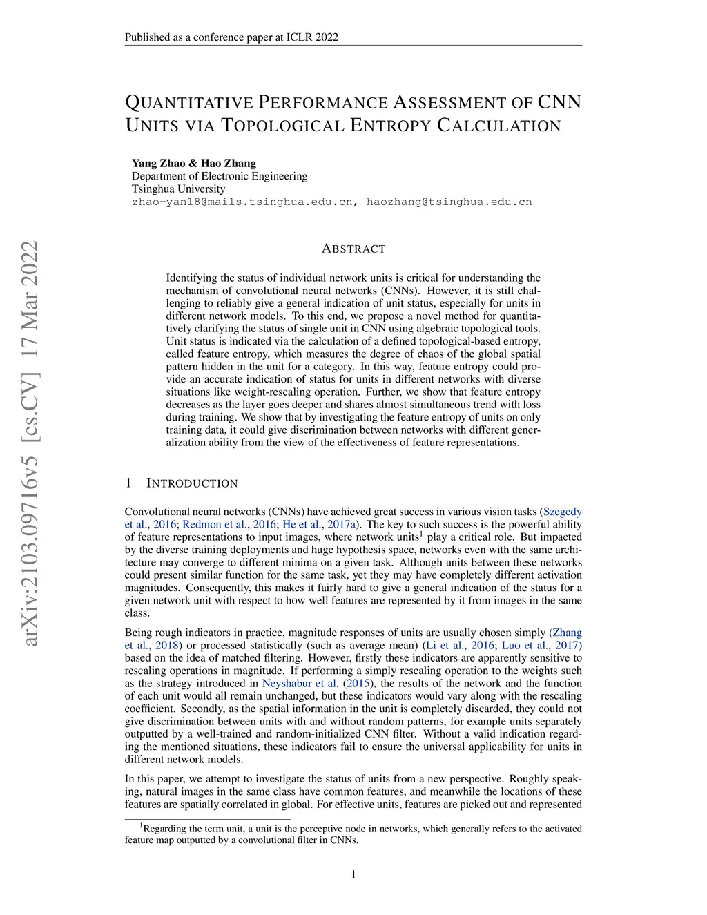 Quantitative Performance Assessment of CNN Units via Topological Entropy