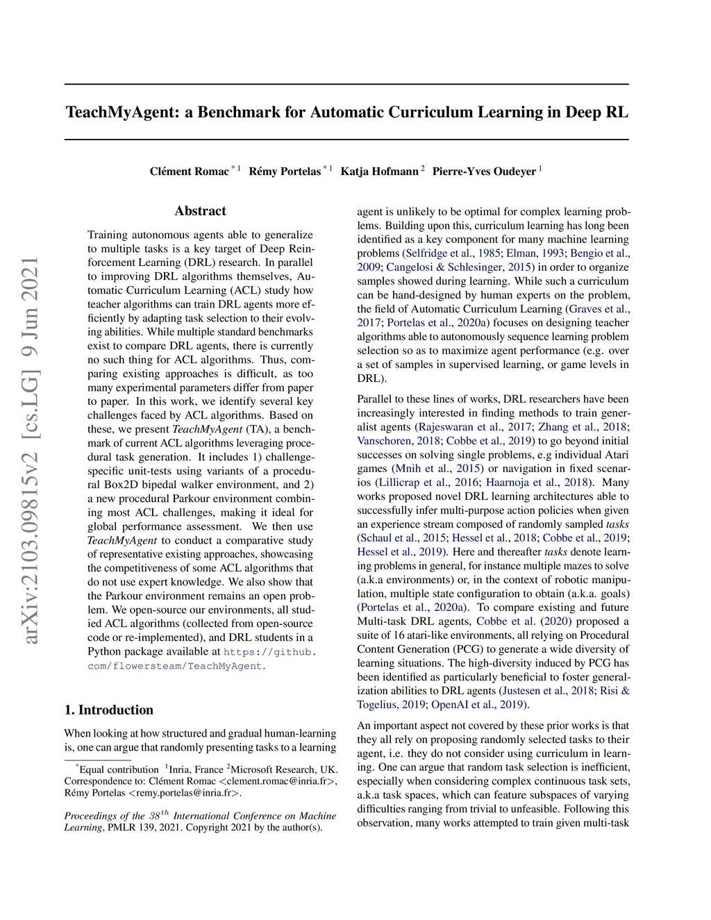 TeachMyAgent: a Benchmark for Automatic Curriculum Learning in Deep RL