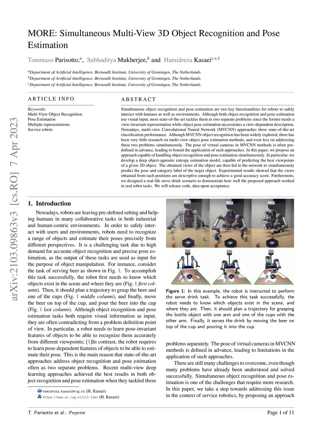 Simultaneous object recognition and pose estimation are two key functionalities for robots to safely interact with humans as well as environments. Although both object recognition and pose estimation use visual input, most state-of-the-art tackles them as two separate problems since the former needs a view-invariant representation while object pose estimation necessitates a view-dependent description. Nowadays, multi-view Convolutional Neural Network (MVCNN) approaches show state-of-the-art classification performance. Although MVCNN object recognition has been widely explored, there has been very little research on multi-view object pose estimation methods, and even less on addressing these two problems simultaneously. The pose of virtual cameras in MVCNN methods is often predefined in advance, leading to bound the application of such approaches. In this paper, we propose an approach capable of handling object recognition and pose estimation simultaneously. In particular, we develop a deep object-agnostic entropy estimation model, capable of predicting the best viewpoints of a given 3D object. The obtained views of the object are then fed to the network to simultaneously predict the pose and category label of the target object. Experimental results showed that the views obtained from such positions are descriptive enough to achieve a good accuracy score. Furthermore, we designed a real-life serve drink scenario to demonstrate how well the proposed approach worked in real robot tasks. Code is available online at: github.com/SubhadityaMukherjee/more_mvcnn