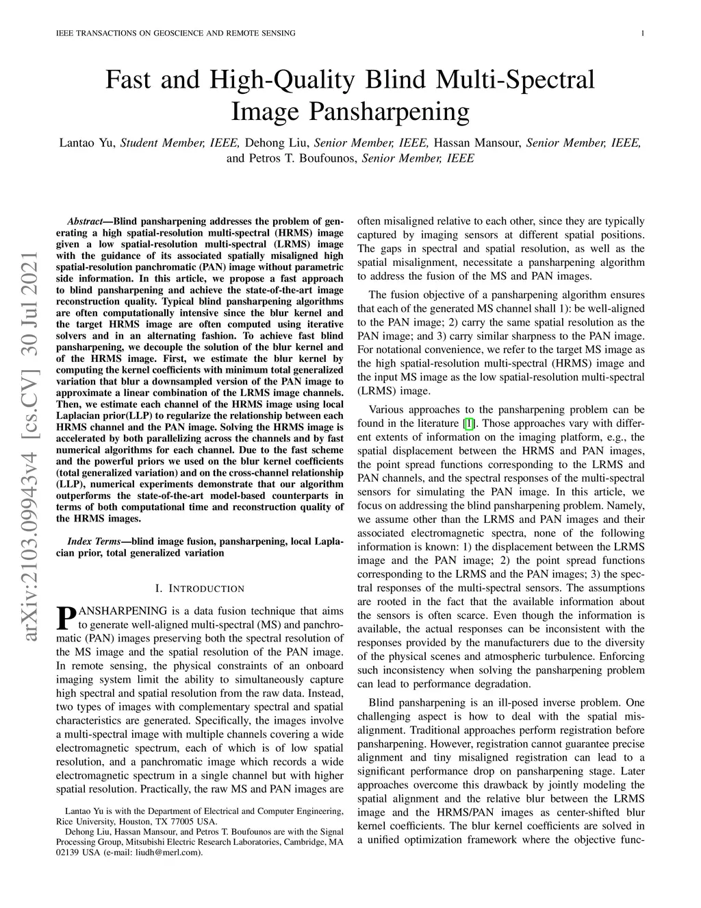Fast and High-Quality Blind Multi-Spectral Image Pansharpening