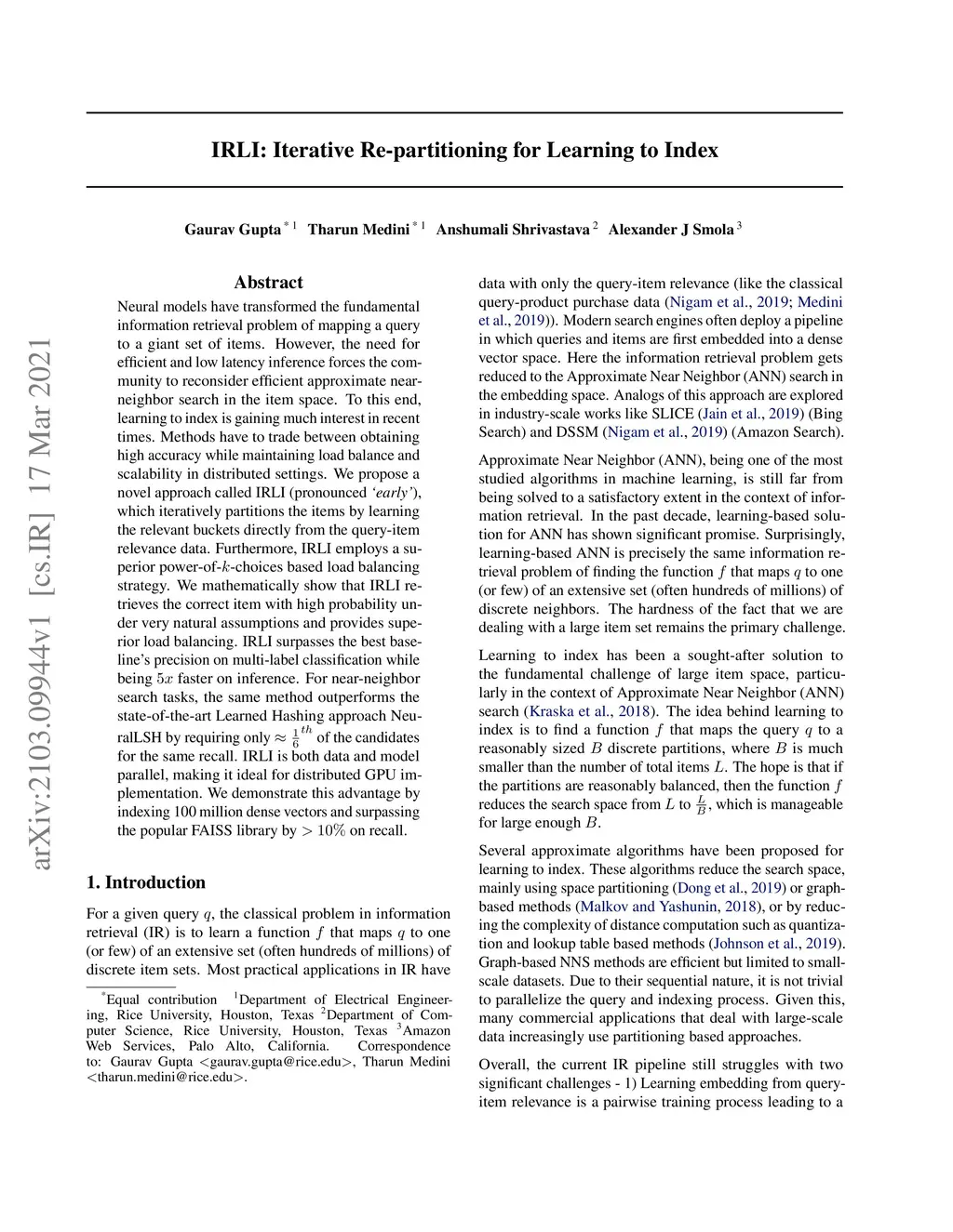 IRLI: Iterative Re-partitioning for Learning to Index
