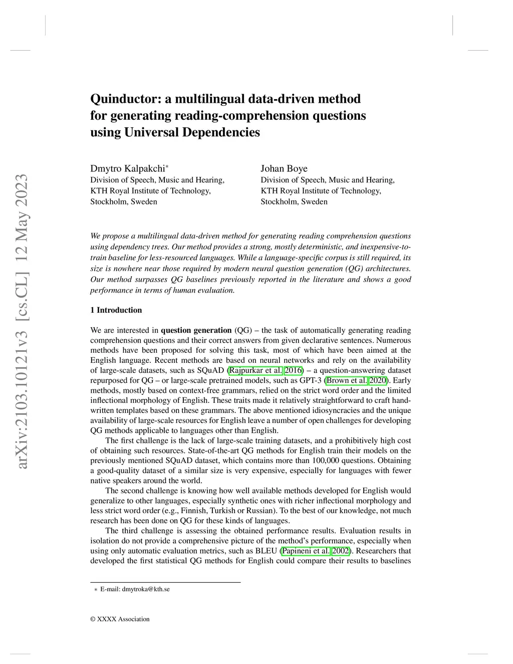 Quinductor: a multilingual data-driven method for generating
