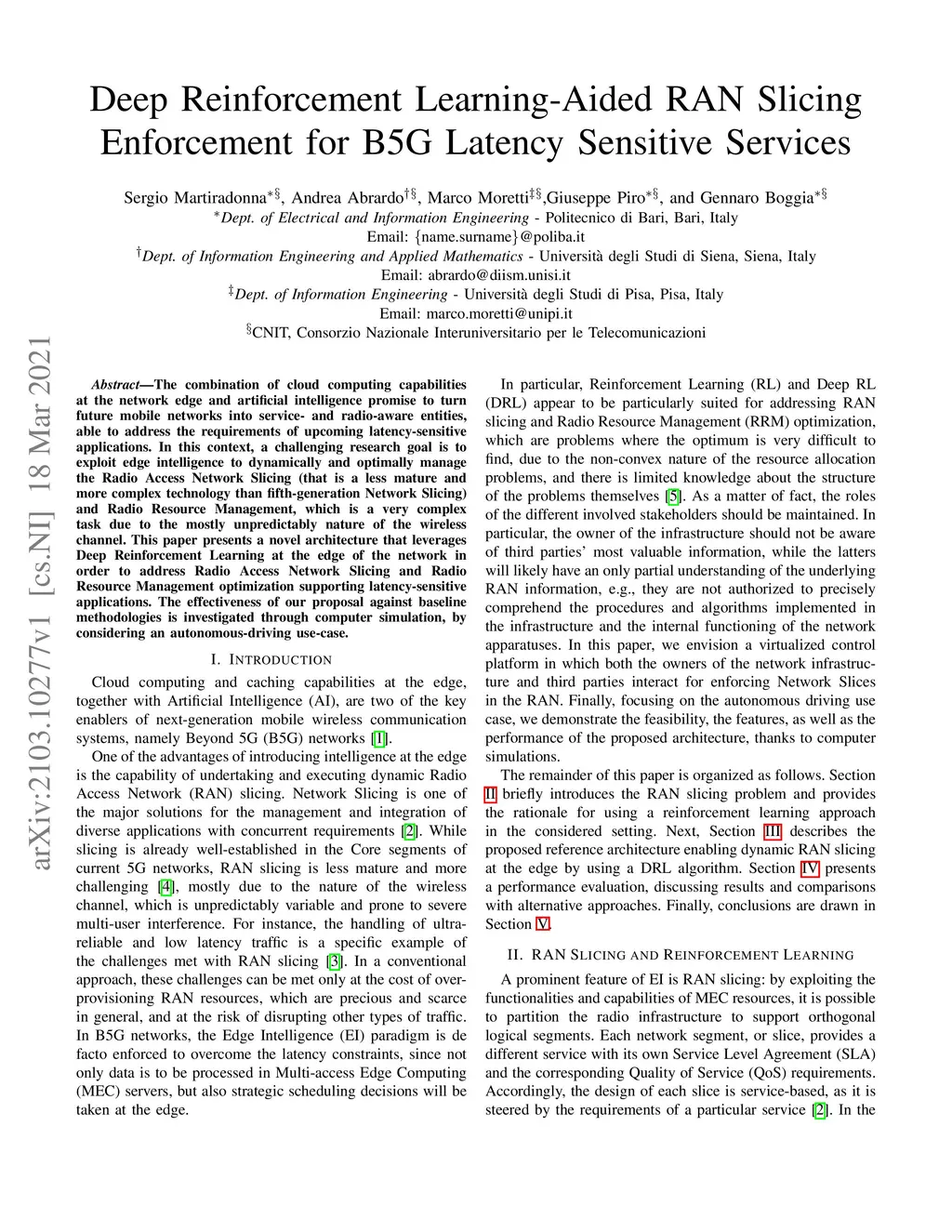 The combination of cloud computing capabilities at the network edge and artificial intelligence promise to turn future mobile networks into service- and radio-aware entities, able to address the requirements of upcoming latency-sensitive applications. In this context, a challenging research goal is to exploit edge intelligence to dynamically and optimally manage the Radio Access Network Slicing (that is a less mature and more complex technology than fifth-generation Network Slicing) and Radio Resource Management, which is a very complex task due to the mostly unpredictably nature of the wireless channel. This paper presents a novel architecture that leverages Deep Reinforcement Learning at the edge of the network in order to address Radio Access Network Slicing and Radio Resource Management optimization supporting latency-sensitive applications. The effectiveness of our proposal against baseline methodologies is investigated through computer simulation, by considering an autonomous-driving use-case.