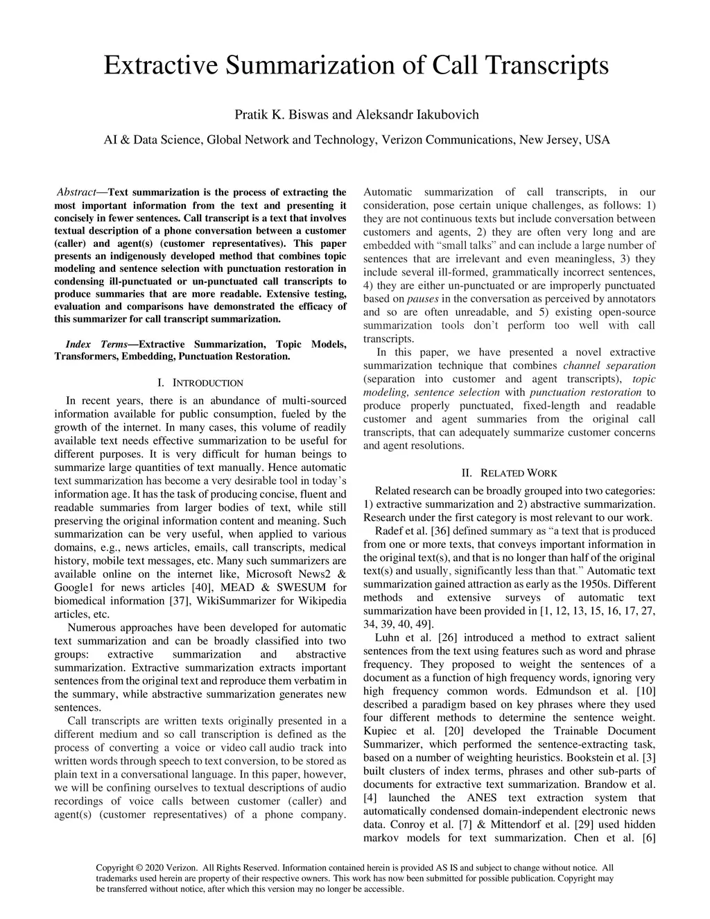 Extractive Summarization of Call Transcripts