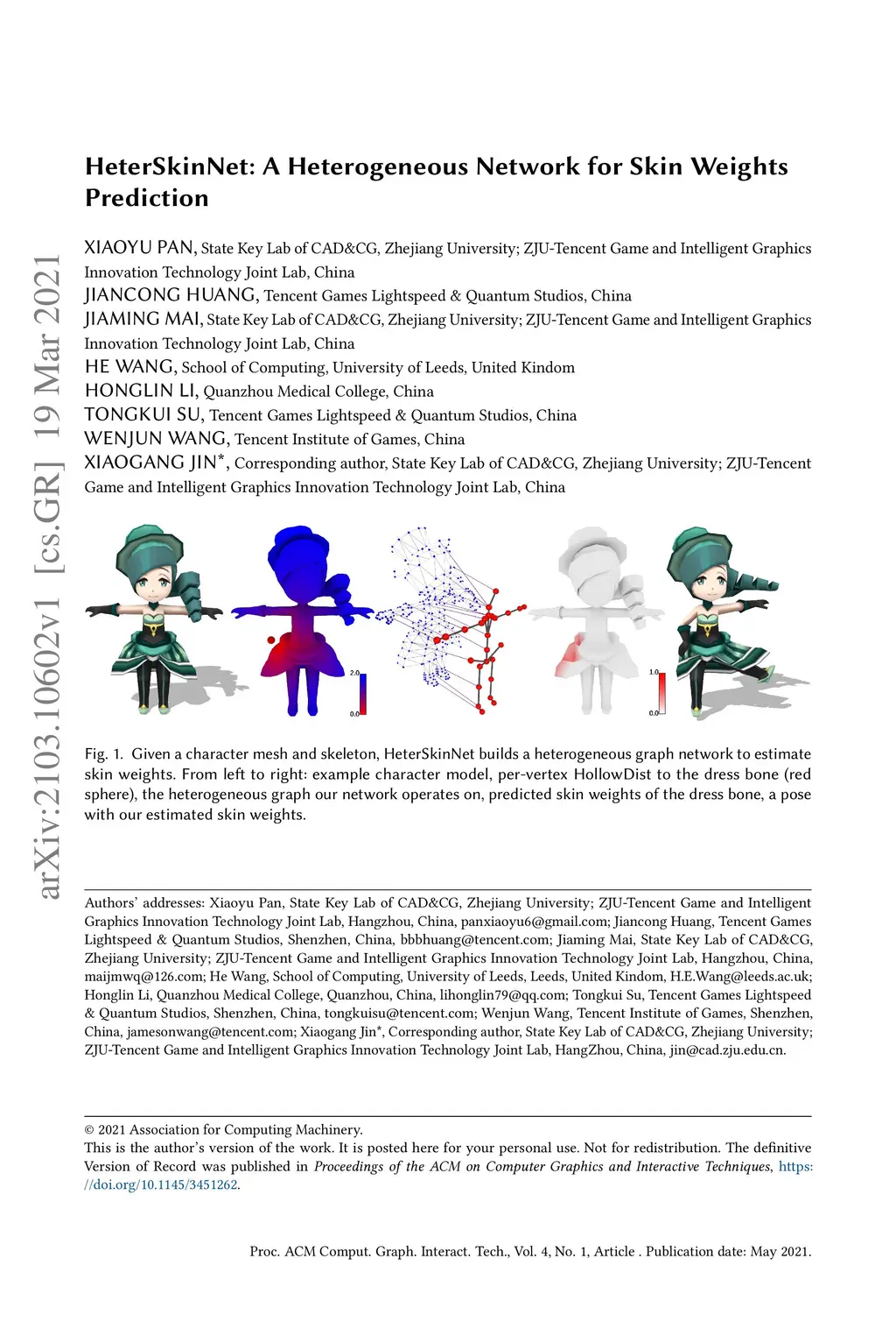 HeterSkinNet: A Heterogeneous Network for Skin Weights Prediction