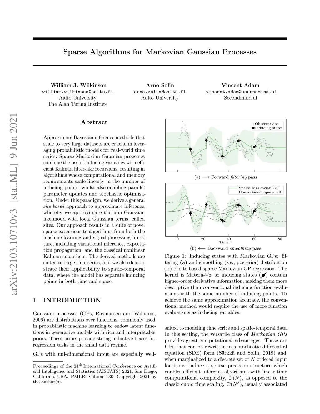 Approximate Bayesian inference methods that scale to very large datasets are crucial in leveraging probabilistic models for real-world time series. Sparse Markovian Gaussian processes combine the use of inducing variables with efficient Kalman filter-like recursions, resulting in algorithms whose computational and memory requirements scale linearly in the number of inducing points, whilst also enabling parallel parameter updates and stochastic optimisation. Under this paradigm, we derive a general site-based approach to approximate inference, whereby we approximate the non-Gaussian likelihood with local Gaussian terms, called sites. Our approach results in a suite of novel sparse extensions to algorithms from both the machine learning and signal processing literature, including variational inference, expectation propagation, and the classical nonlinear Kalman smoothers. The derived methods are suited to large time series, and we also demonstrate their applicability to spatio-temporal data, where the model has separate inducing points in both time and space.