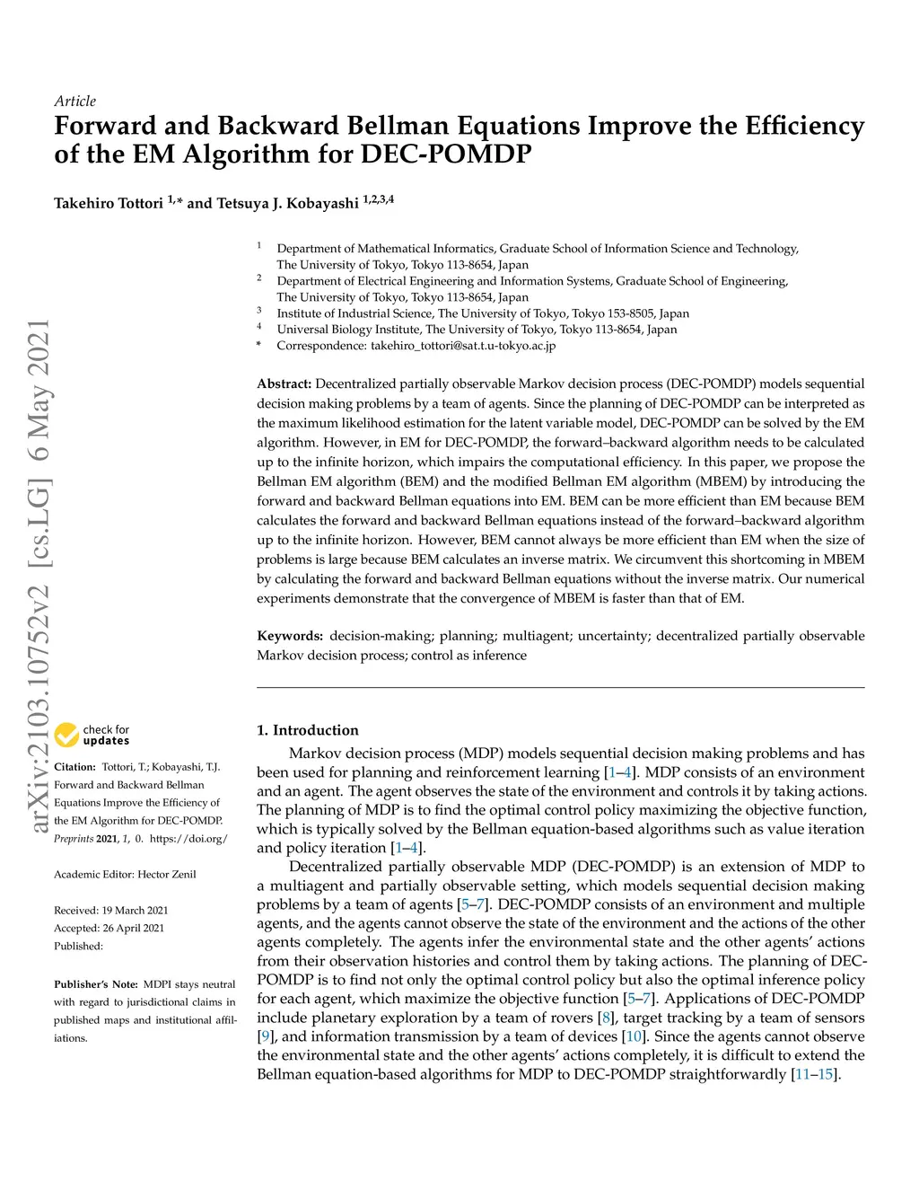 algorithm for DEC-POMDP