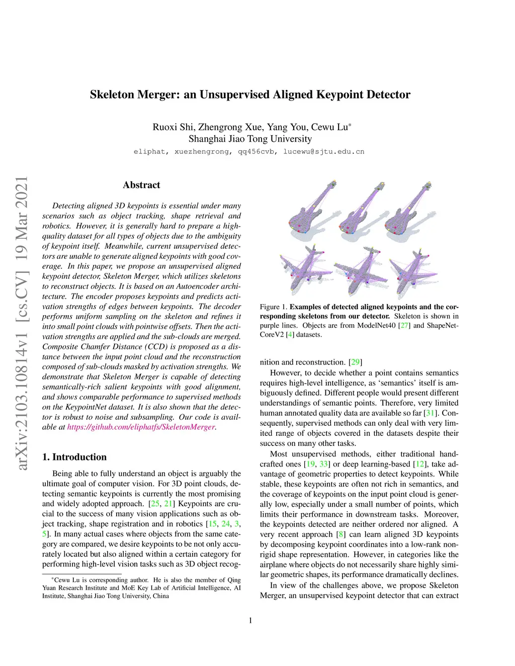 Skeleton Merger: an Unsupervised Aligned Keypoint Detector