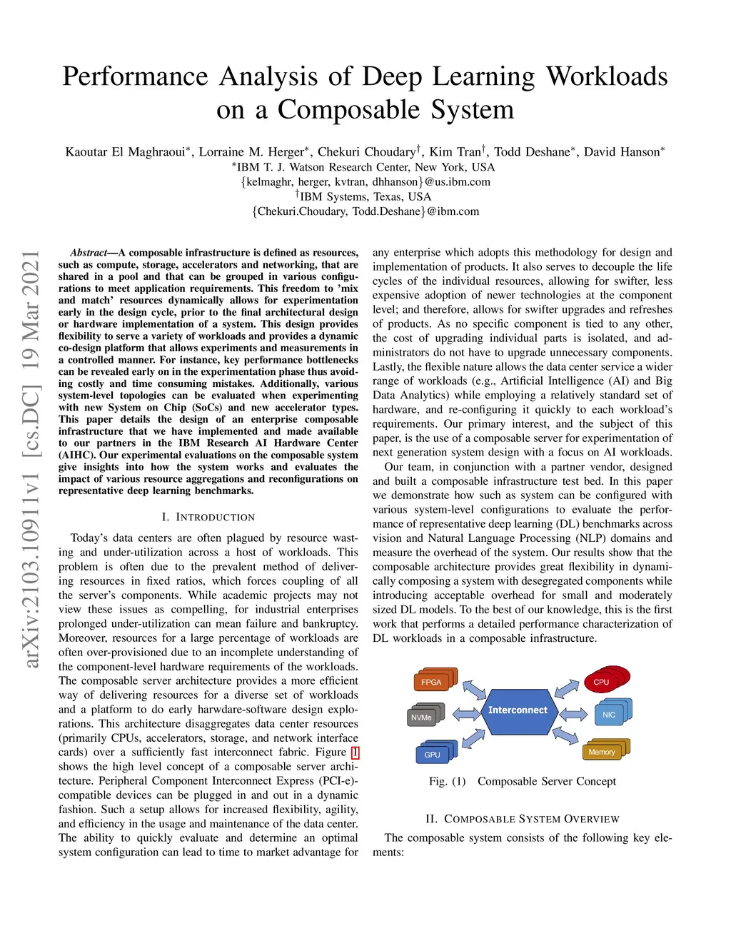 Performance Analysis of Deep Learning Workloads on a Composable System