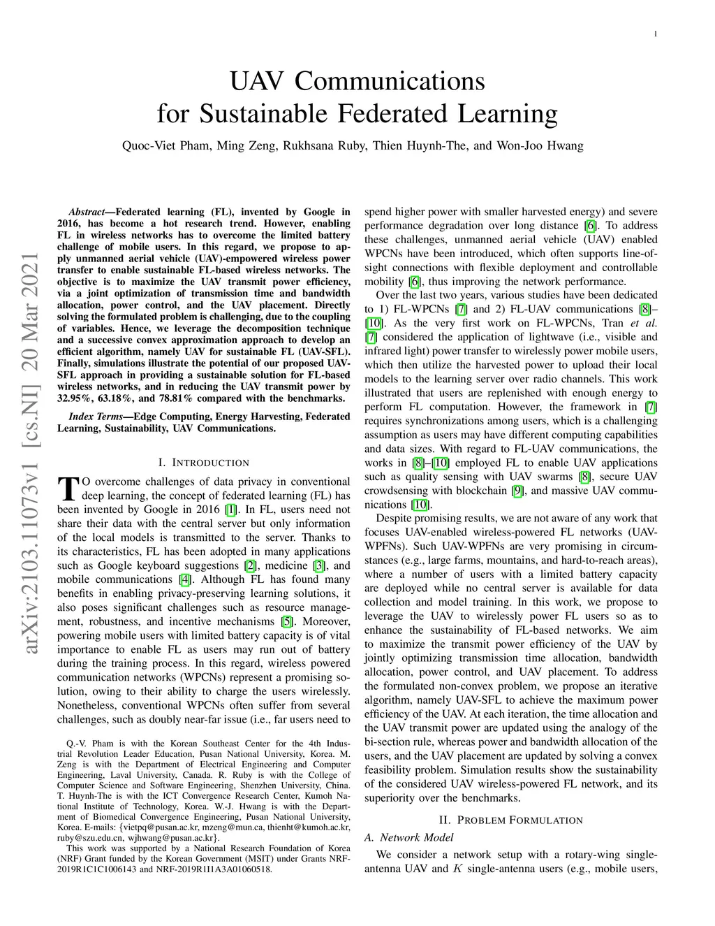 UAV Communications for Sustainable Federated Learning