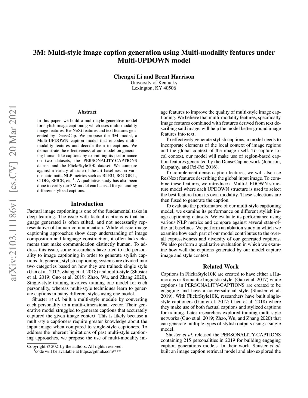 3M: Multi-style image caption generation using Multi-modality features
