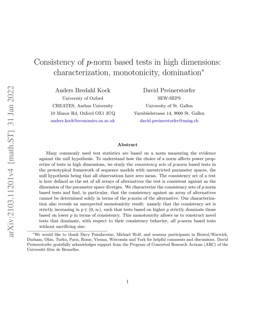 Many commonly used test statistics are based on a norm measuring the evidence against the null hypothesis. To understand how the choice of a norm affects power properties of tests in high dimensions, we study the consistency sets of -norm based tests in the prototypical framework of sequence models with unrestricted parameter spaces, the null hypothesis being that all observations have zero mean. The consistency set of a test is here defined as the set of all arrays of alternatives the test is consistent against as the dimension of the parameter space diverges. We characterize the consistency sets of -norm based tests and find, in particular, that the consistency against an array of alternatives cannot be determined solely in terms of the -norm of the alternative. Our characterization also reveals an unexpected monotonicity result: namely that the consistency set is strictly increasing in , such that tests based on higher strictly dominate those based on lower in terms of consistency. This monotonicity allows us to construct novel tests that dominate, with respect to their consistency behavior, all -norm based tests without sacrificing size.