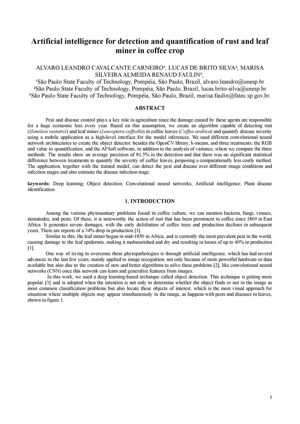 Pest and disease control plays a key role in agriculture since the damage caused by these agents are responsible for a huge economic loss every year. Based on this assumption, we create an algorithm capable of detecting rust (Hemileia vastatrix) and leaf miner (Leucoptera coffeella) in coffee leaves (Coffea arabica) and quantify disease severity using a mobile application as a high-level interface for the model inferences. We used different convolutional neural network architectures to create the object detector, besides the OpenCV library, k-means, and three treatments: the RGB and value to quantification, and the AFSoft software, in addition to the analysis of variance, where we compare the three methods. The results show an average precision of 81,5% in the detection and that there was no significant statistical difference between treatments to quantify the severity of coffee leaves, proposing a computationally less costly method. The application, together with the trained model, can detect the pest and disease over different image conditions and infection stages and also estimate the disease infection stage.