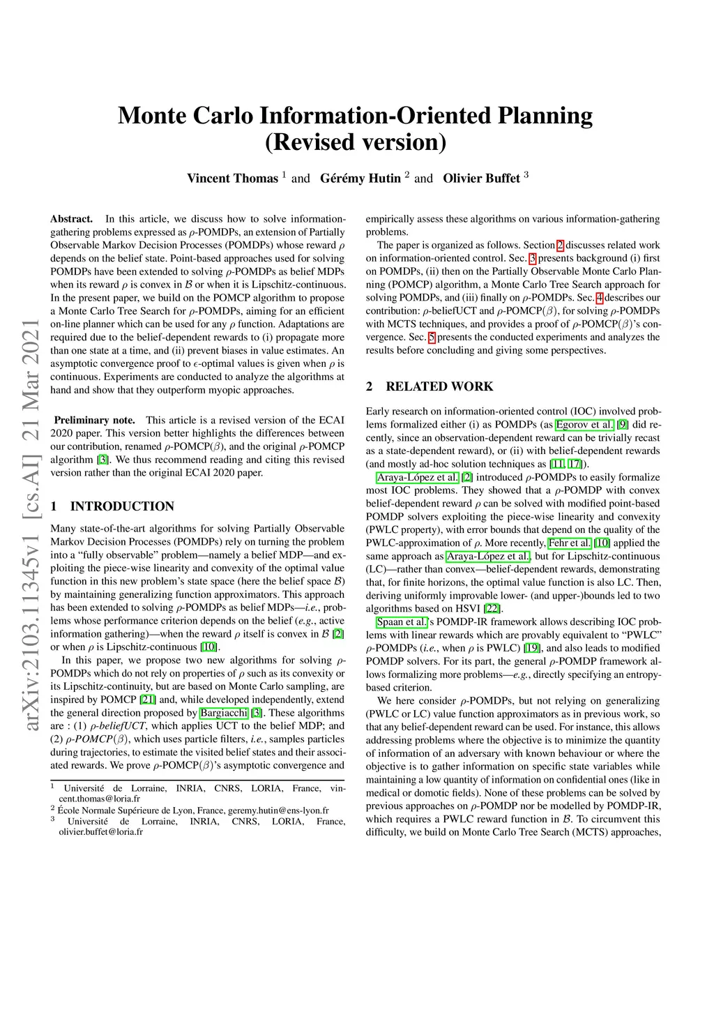 In this article, we discuss how to solve information-gathering problems expressed as rho-POMDPs, an extension of Partially Observable Markov Decision Processes (POMDPs) whose reward rho depends on the belief state. Point-based approaches used for solving POMDPs have been extended to solving rho-POMDPs as belief MDPs when its reward rho is convex in B or when it is Lipschitz-continuous. In the present paper, we build on the POMCP algorithm to propose a Monte Carlo Tree Search for rho-POMDPs, aiming for an efficient on-line planner which can be used for any rho function. Adaptations are required due to the belief-dependent rewards to (i) propagate more than one state at a time, and (ii) prevent biases in value estimates. An asymptotic convergence proof to epsilon-optimal values is given when rho is continuous. Experiments are conducted to analyze the algorithms at hand and show that they outperform myopic approaches.