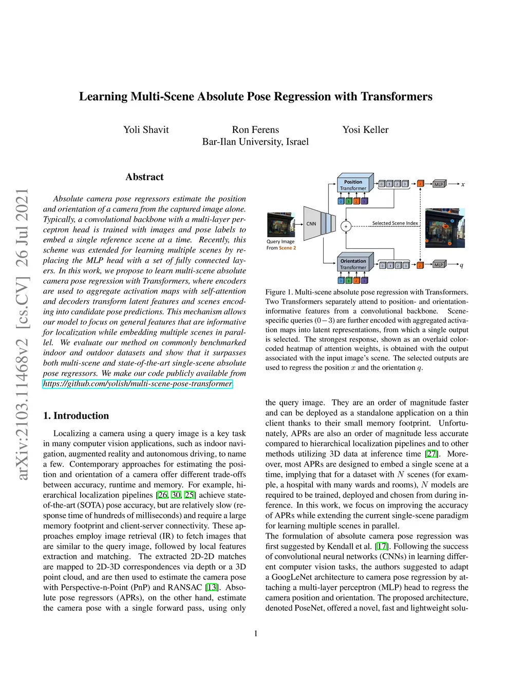 Learning Multi-Scene Absolute Pose Regression with Transformers