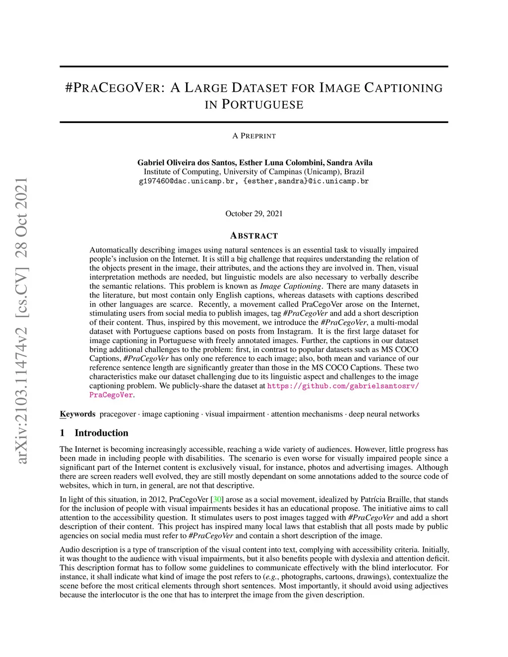 #PraCegoVer: A Large Dataset for Image Captioning in Portuguese