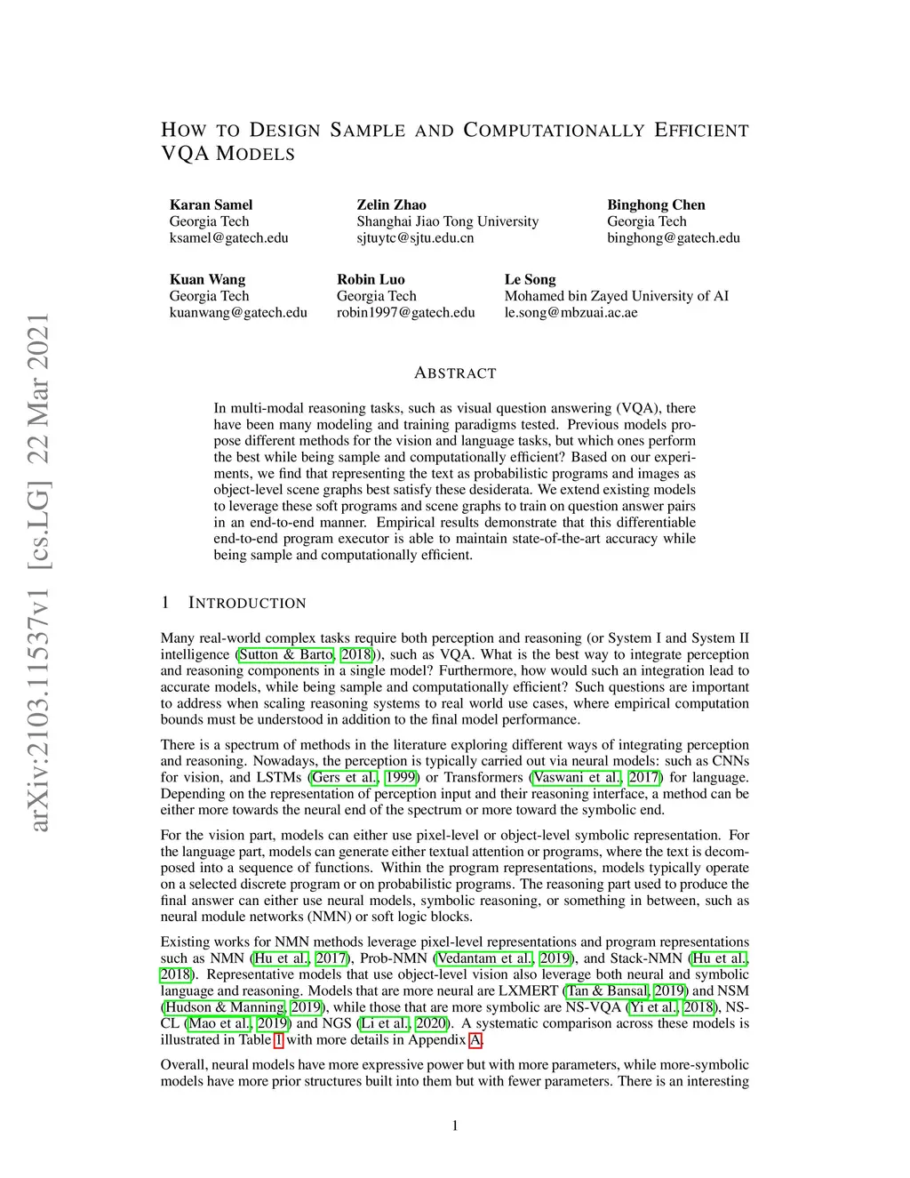 How to Design Sample and Computationally Efficient VQA Models