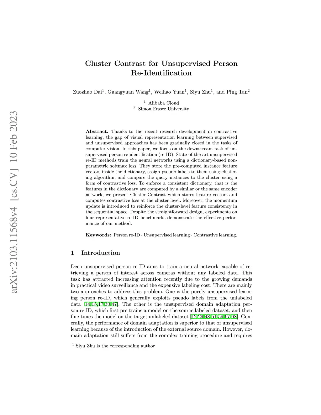 State-of-the-art unsupervised re-ID methods train the neural networks using a memory-based non-parametric softmax loss. Instance feature vectors stored in memory are assigned pseudo-labels by clustering and updated at instance level. However, the varying cluster sizes leads to inconsistency in the updating progress of each cluster. To solve this problem, we present Cluster Contrast which stores feature vectors and computes contrast loss at the cluster level. Our approach employs a unique cluster representation to describe each cluster, resulting in a cluster-level memory dictionary. In this way, the consistency of clustering can be effectively maintained throughout the pipline and the GPU memory consumption can be significantly reduced. Thus, our method can solve the problem of cluster inconsistency and be applicable to larger data sets. In addition, we adopt different clustering algorithms to demonstrate the robustness and generalization of our framework. The application of Cluster Contrast to a standard unsupervised re-ID pipeline achieves considerable improvements of 9.9%, 8.3%, 12.1% compared to state-of-the-art purely unsupervised re-ID methods and 5.5%, 4.8%, 4.4% mAP compared to the state-of-the-art unsupervised domain adaptation re-ID methods on the Market, Duke, and MSMT17 datasets. Code is available at https://github.com/alibaba/cluster-contrast.