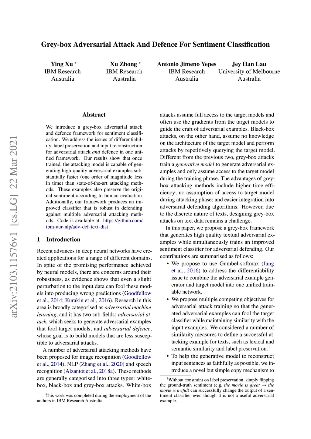Grey-box Adversarial Attack And Defence For Sentiment Classification