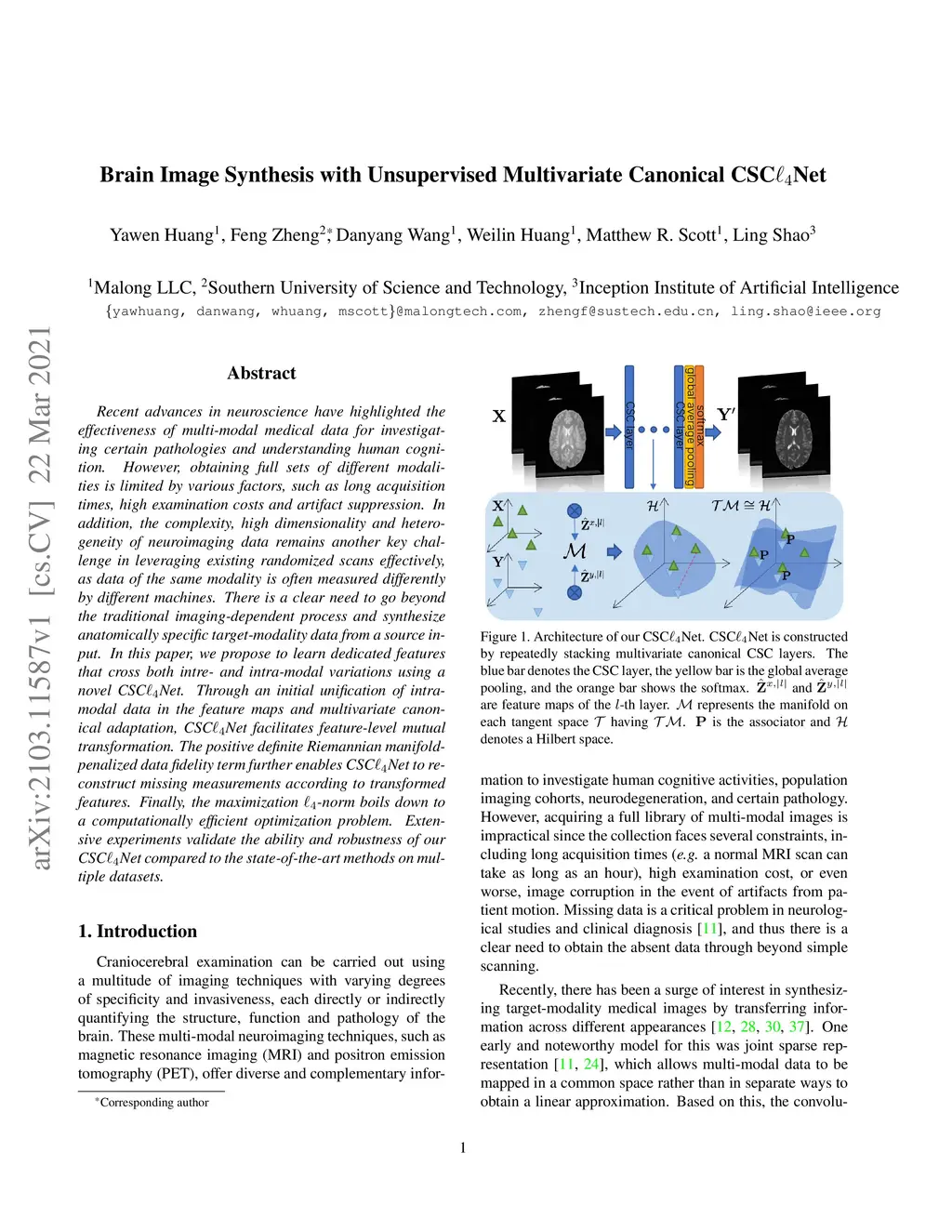 Recent advances in neuroscience have highlighted the effectiveness of multi-modal medical data for investigating certain pathologies and understanding human cognition. However, obtaining full sets of different modalities is limited by various factors, such as long acquisition times, high examination costs and artifact suppression. In addition, the complexity, high dimensionality and heterogeneity of neuroimaging data remains another key challenge in leveraging existing randomized scans effectively, as data of the same modality is often measured differently by different machines. There is a clear need to go beyond the traditional imaging-dependent process and synthesize anatomically specific target-modality data from a source input. In this paper, we propose to learn dedicated features that cross both intre- and intra-modal variations using a novel CSCNet. Through an initial unification of intra-modal data in the feature maps and multivariate canonical adaptation, CSCNet facilitates feature-level mutual transformation. The positive definite Riemannian manifold-penalized data fidelity term further enables CSCNet to reconstruct missing measurements according to transformed features. Finally, the maximization -norm boils down to a computationally efficient optimization problem. Extensive experiments validate the ability and robustness of our CSCNet compared to the state-of-the-art methods on multiple datasets.