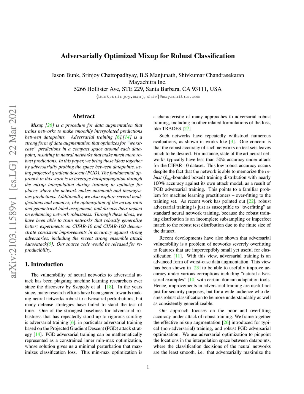 Adversarially Optimized Mixup for Robust Classification