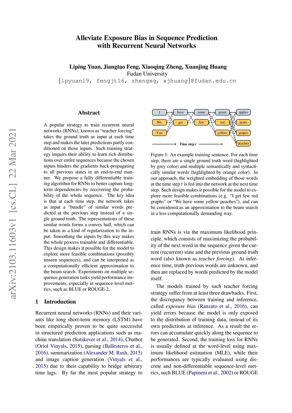 Alleviate Exposure Bias in Sequence Prediction \\ with Recurrent Neural