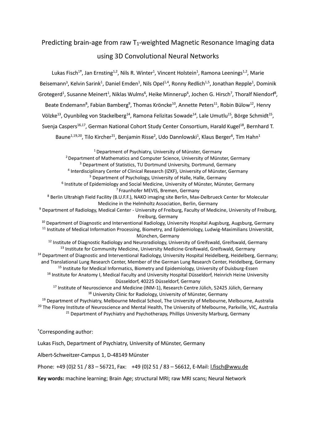 Predicting brain-age from raw T 1 -weighted Magnetic Resonance Imaging