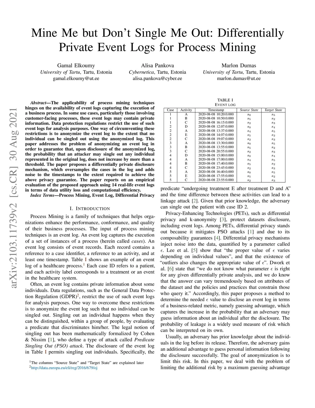 Mine Me but Don't Single Me Out: Differentially Private Event Logs for
