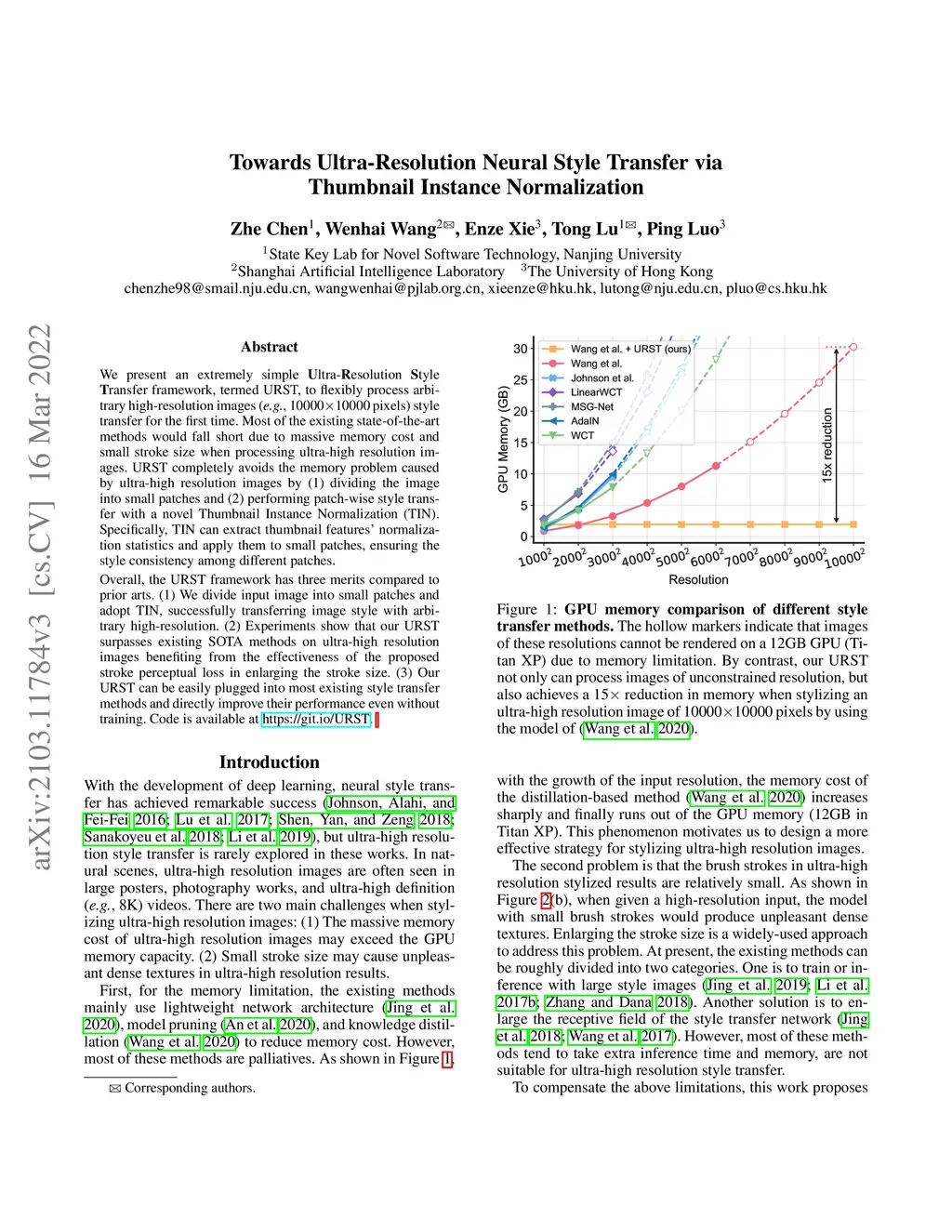 Towards Ultra-Resolution Neural Style Transfer via Thumbnail Instance